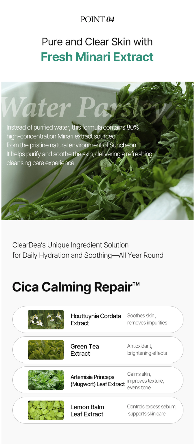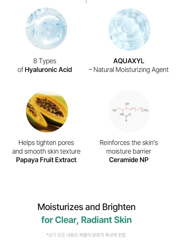 Water, Butylene Glycol, Glycerin, C9-12 Alkane, 1,2-Hexanediol, Pentylene Glycol, Vinyl Dimethicone, Polypropylsilsesquioxane, Polyglyceryl-3 Distearate, Ammonium Acryloyldimethyltaurate/VP Copolymer, Carbomer, Tromethamine, Xylitylglucoside, Propanediol, C13-14 Alkane, Anhydroxylitol, Panthenol, Silica, Oenanthe Javanica Extract (732ppm), Xylitol, Glyceryl Stearate Citrate, Adenosine, Carthamus Tinctorius (Safflower) Flower Extract, Disodium EDTA, Dextrin, Gardenia Florida Fruit Extract, Caprylhydroxamic Acid, Sodium Hyaluronate, Hydrolyzed Hyaluronic Acid, Hydrolyzed Sodium Hyaluronate, Hyaluronic Acid, Hydroxypropyltrimonium Hyaluronate, Potassium Hyaluronate, Melissa Officinalis Leaf Extract, Sodium Hyaluronate Crosspolymer, Sodium Acetylated Hyaluronate, Camellia Sinensis Leaf Extract, Diospyros Kaki Leaf Extract, Artemisia Princeps Leaf Extract, Houttuynia Cordata Extract, Melaleuca Alternifolia (Tea Tree) Leaf Extract, Carica Papaya (Papaya) Fruit Extract, Ceramide NP, Hydrogenated Lecithin