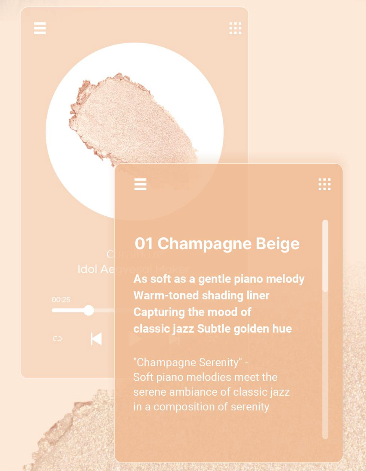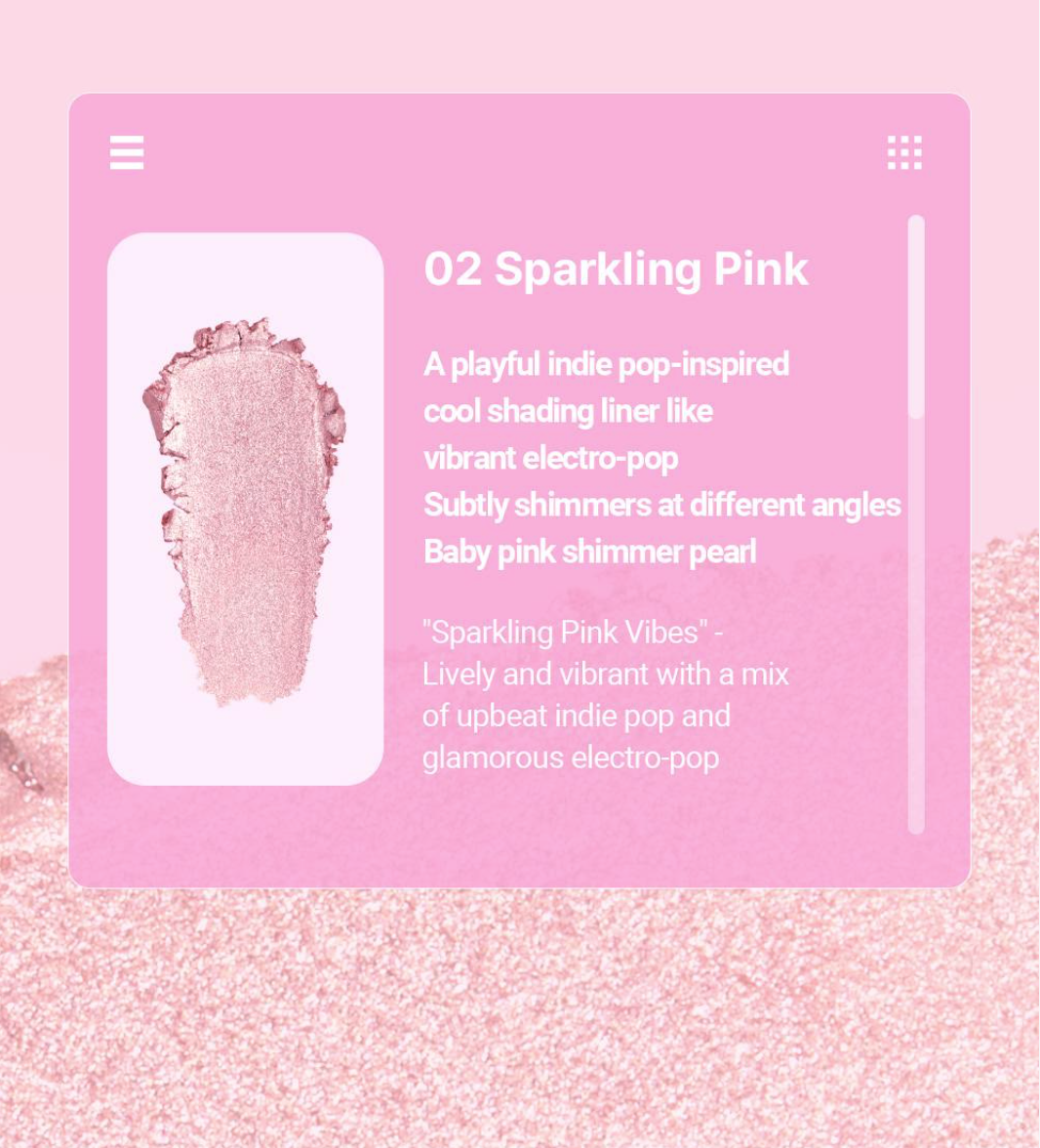 | Shades | 01 Champagne Beige, 02 Sparkling Pink |