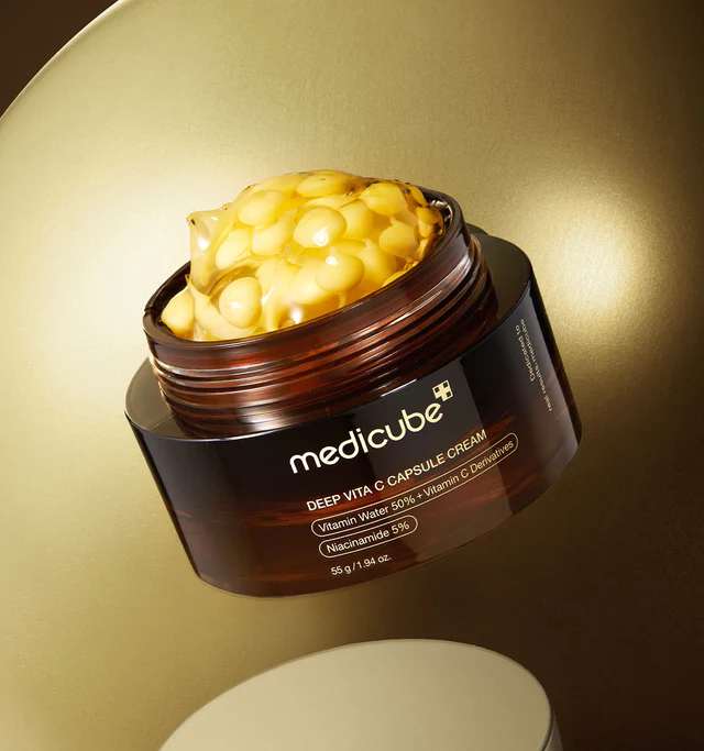 Bring back clarity and glow with the Medicube Deep Vita C Capsule Cream. This unique gel-cream combines encapsulated Vitamin C with sea buckthorn water, niacinamide, and ferulic acid to even tone, fade spots, and energize the complexion. Each “boba-like” capsule bursts on application, releasing fresh antioxidants directly into the skin. The formula melts into a silky finish, giving you hydration and radiance without heaviness — perfect for daily AM or PM use.