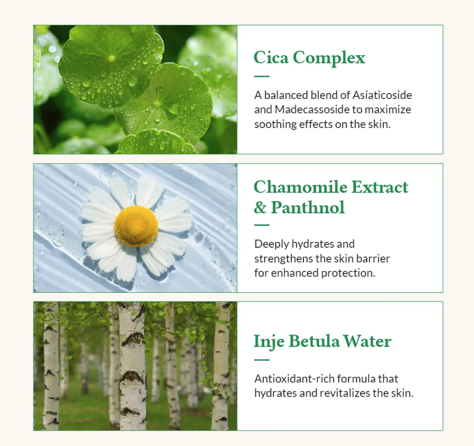 • Inje Betula (birch) water to revitalize and soothe stress‑prone skin