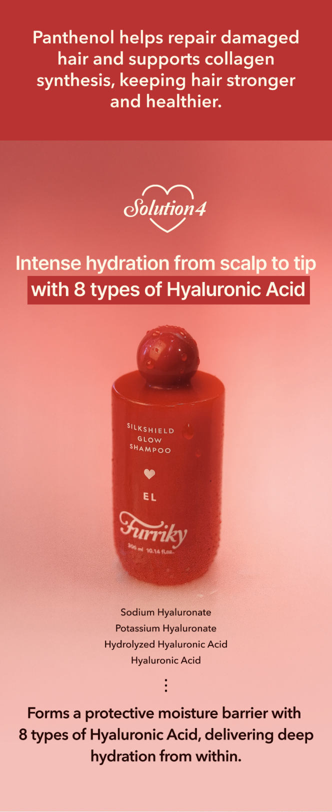 Water, Sodium Laureth Sulfate, Cocamidopropyl Betaine, Sodium Chloride, Sodium Hyaluronate, Potassium Hyaluronate, Hydrolyzed Hyaluronic Acid, Panthenol, PEG-7 Glyceryl Cocoate, Citric Acid, Fragrance, Phenoxyethanol, Disodium EDTA, Butylene Glycol, [plus additional cleansing and conditioning agents].