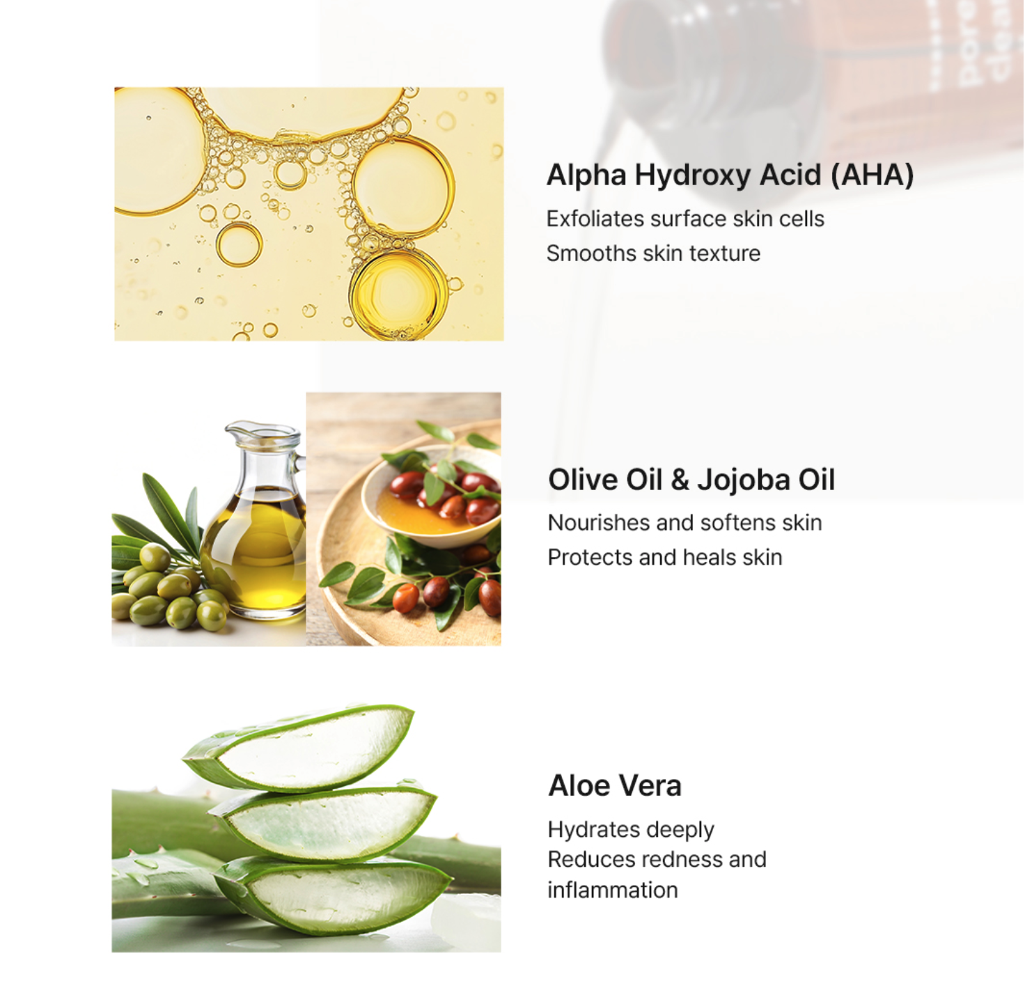 • Contains Lactic Acid (45 ppm), Glycolic Acid (35 ppm), Citric Acid (20 ppm) for mild exfoliation