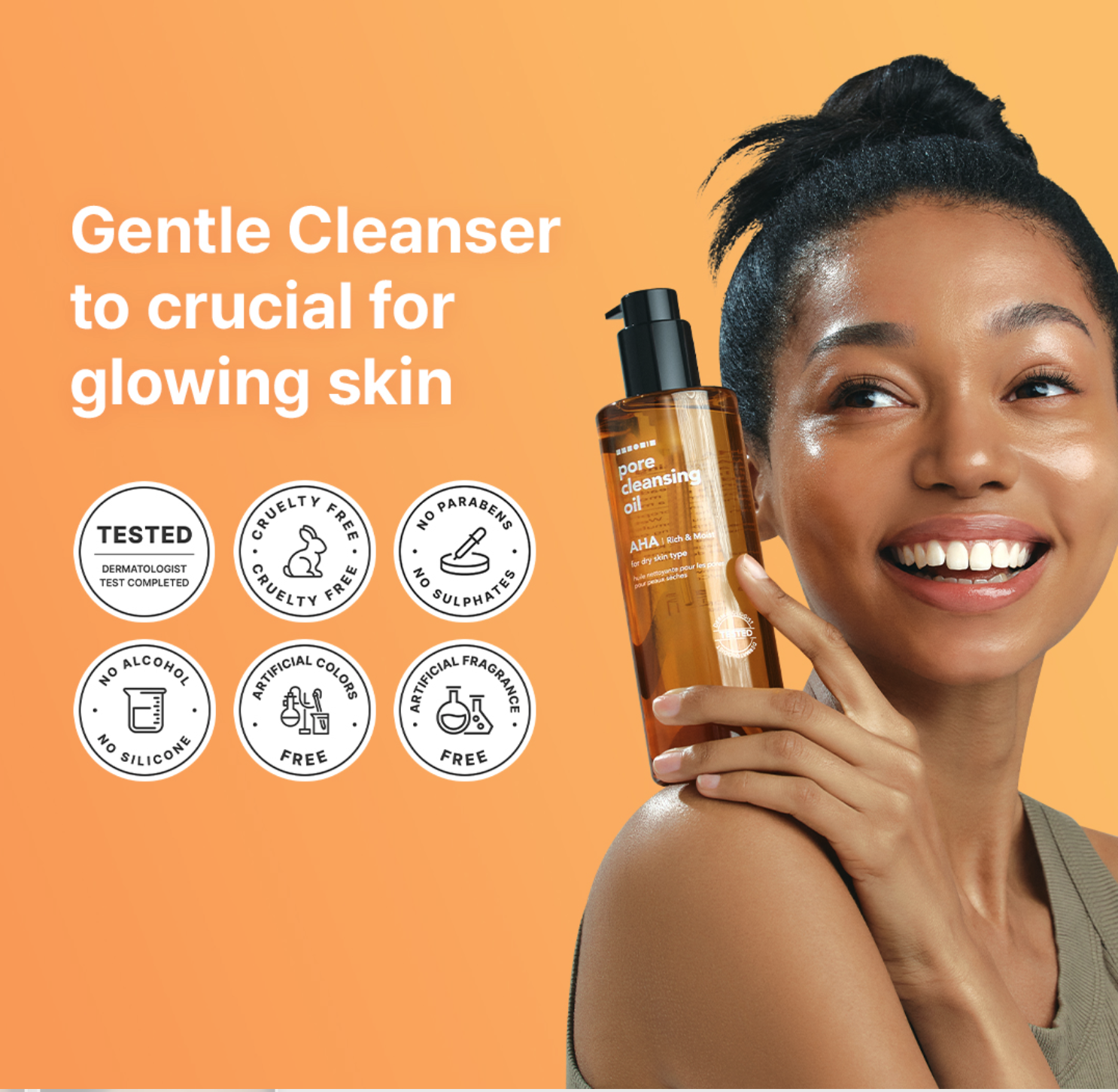 An oil cleanser enriched with AHA (lactic, glycolic, and citric acids) designed to remove makeup and gently exfoliate pores while maintaining hydration.