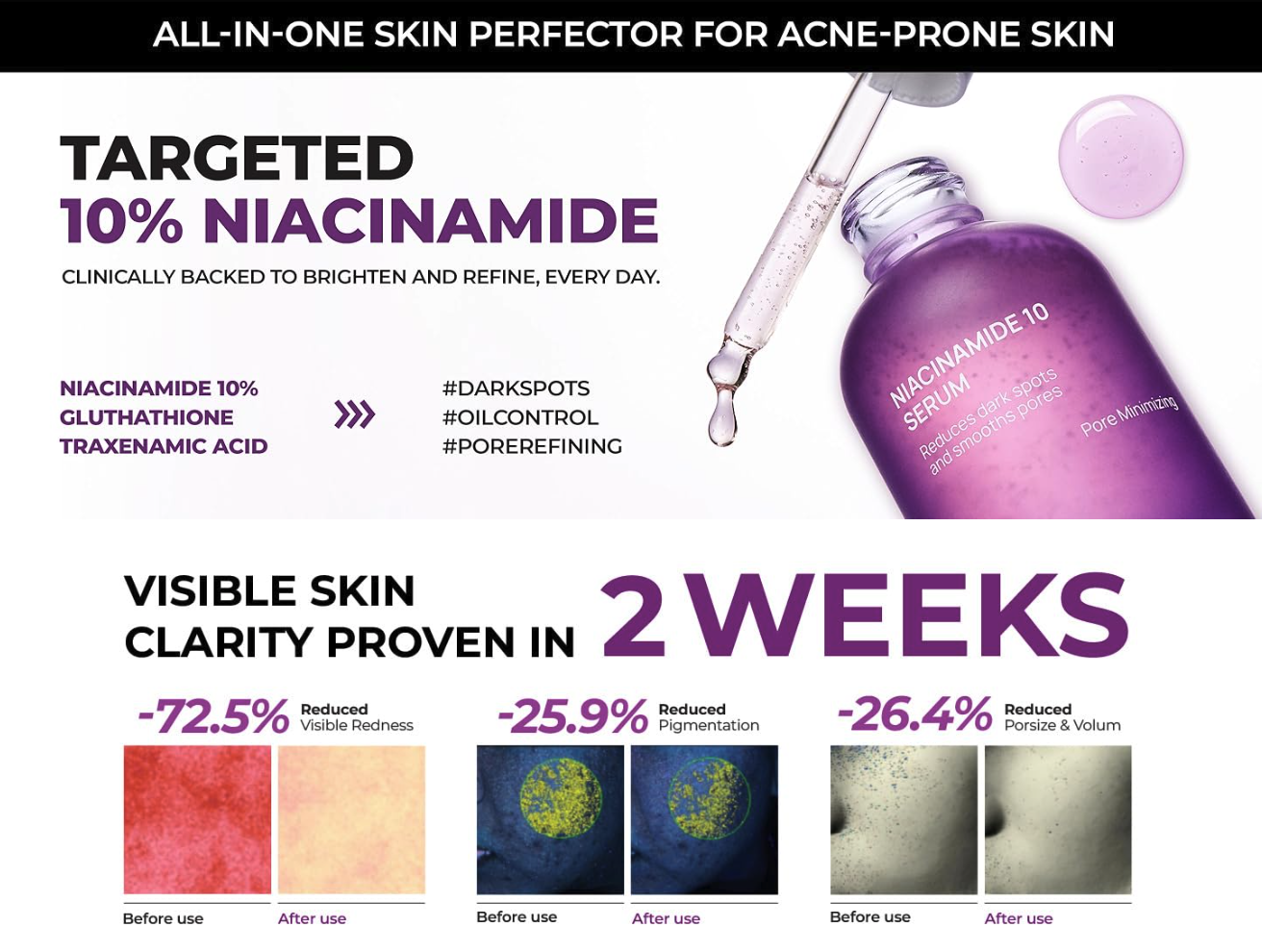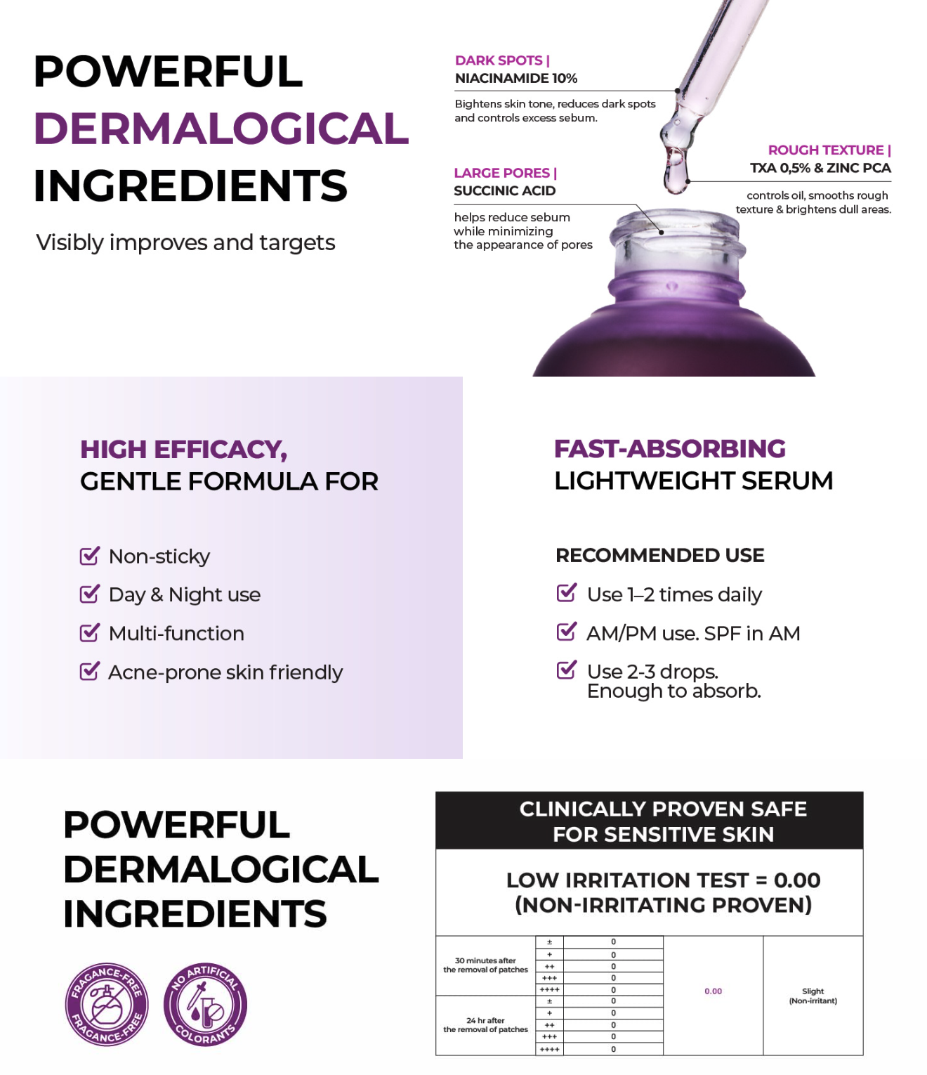 A lightweight serum with 10% niacinamide, this formula works to improve skin tone, refine pores, and reinforce the skin barrier without heaviness or irritation.
