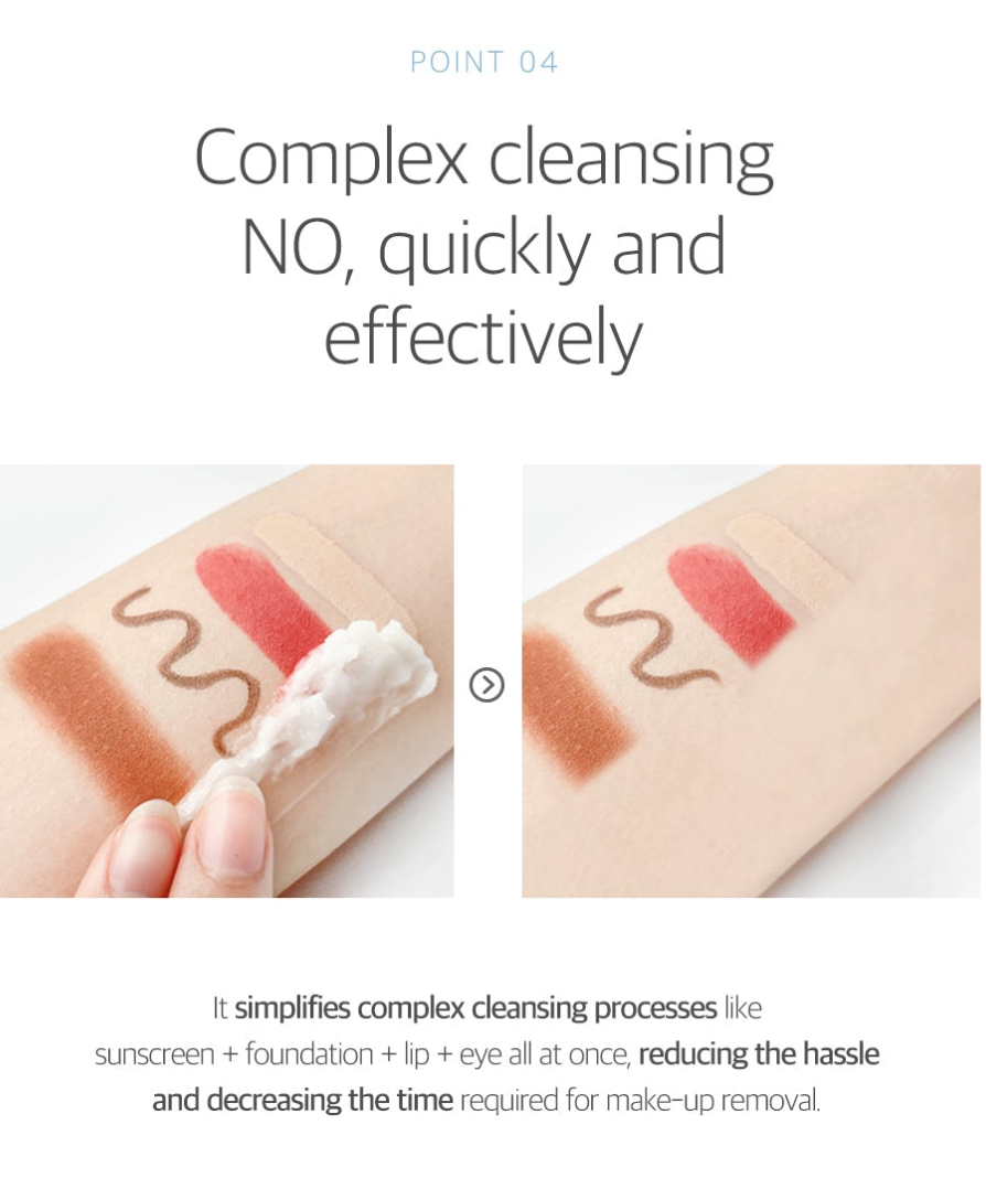 2. Massage onto dry face to dissolve makeup and sebum