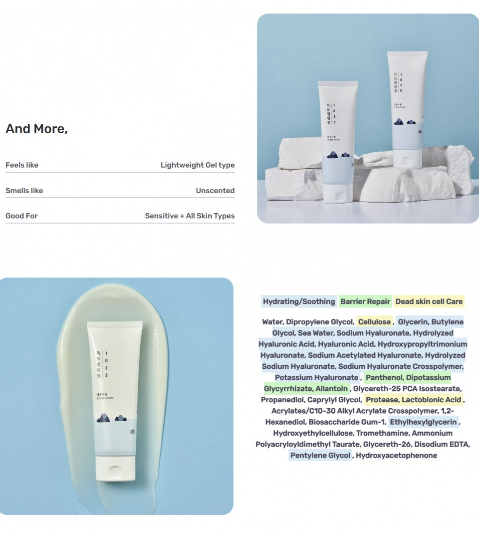 Water, Dipropylene Glycol, Cellulose, Glycerin, Butylene Glycol, Sea Water, Sodium Hyaluronate, Hydrolyzed Hyaluronic Acid, Hyaluronic Acid, Hydroxypropyltrimonium Hyaluronate, Sodium Acetylated Hyaluronate, Hydrolyzed Sodium Hyaluronate, Sodium Hyaluronate Crosspolymer, Potassium Hyaluronate, Panthenol, Dipotassium Glycyrrhizate, Allantoin, Glycereth‑25 PCA Isostearate, Propanediol, Caprylyl Glycol, Protease, Lactobionic Acid, Acrylates/C10‑30 Alkyl Acrylate Crosspolymer, 1,2‑Hexanediol, Biosaccharide Gum‑1, Ethylhexylglycerin, Hydroxyethylcellulose, Tromethamine, Ammonium Polyacryloyldimethyl Taurate, Glycereth‑26, Disodium EDTA, Pentylene Glycol, Hydroxyacetophenone