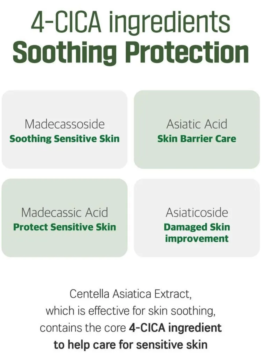 Water, Butylene Glycol, Dipropylene Glycol, Glycerin, Propylene Glycol, 1,2‑Hexanediol, Artemisia Vulgaris Extract, Betaine, Glycerin Methyl Ether, Artemisia Princeps Leaf Extract, Madecassoside, Asiaticoside, Asiatic Acid, Madecassic Acid, Panthenol, Allantoin, Camellia Sinensis Leaf Extract, Centella Asiatica Leaf Extract, Cladosiphon Okamuranus Extract, Salix Alba Bark Extract, Coffea Arabica Seed Extract, Pinus Densiflora Leaf Extract, Citrus Aurantium Bergamia Leaf Extract, Portulaca Oleracea Extract, Decyl Glucoside, Melia Azadirachta Leaf Extract, Salvia Officinalis Oil, Melia Azadirachta Flower Extract, Tocopherol, Polyglyceryl‑10 Laurate, Ammonium Acryloyldimethyltaurate/VP Copolymer, Acrylates Crosspolymer, Tromethamine, Disodium EDTA