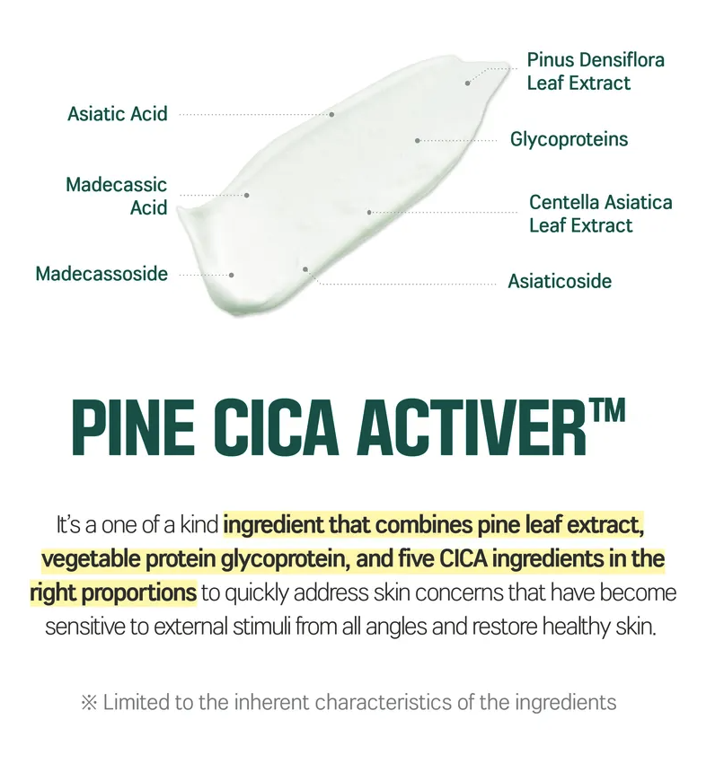 • Pine leaf extract + cica ingredients to calm sensitivity