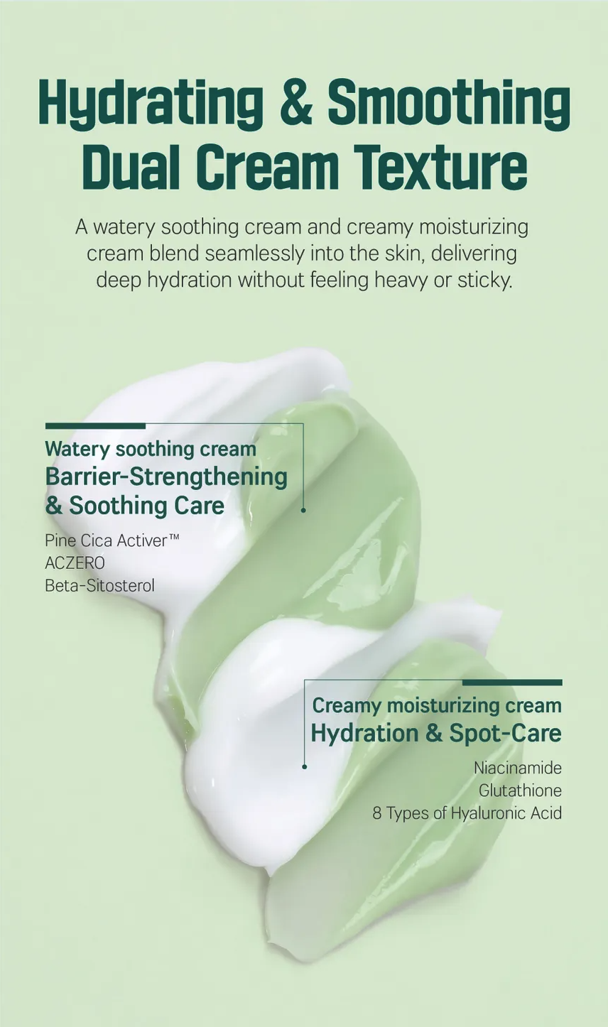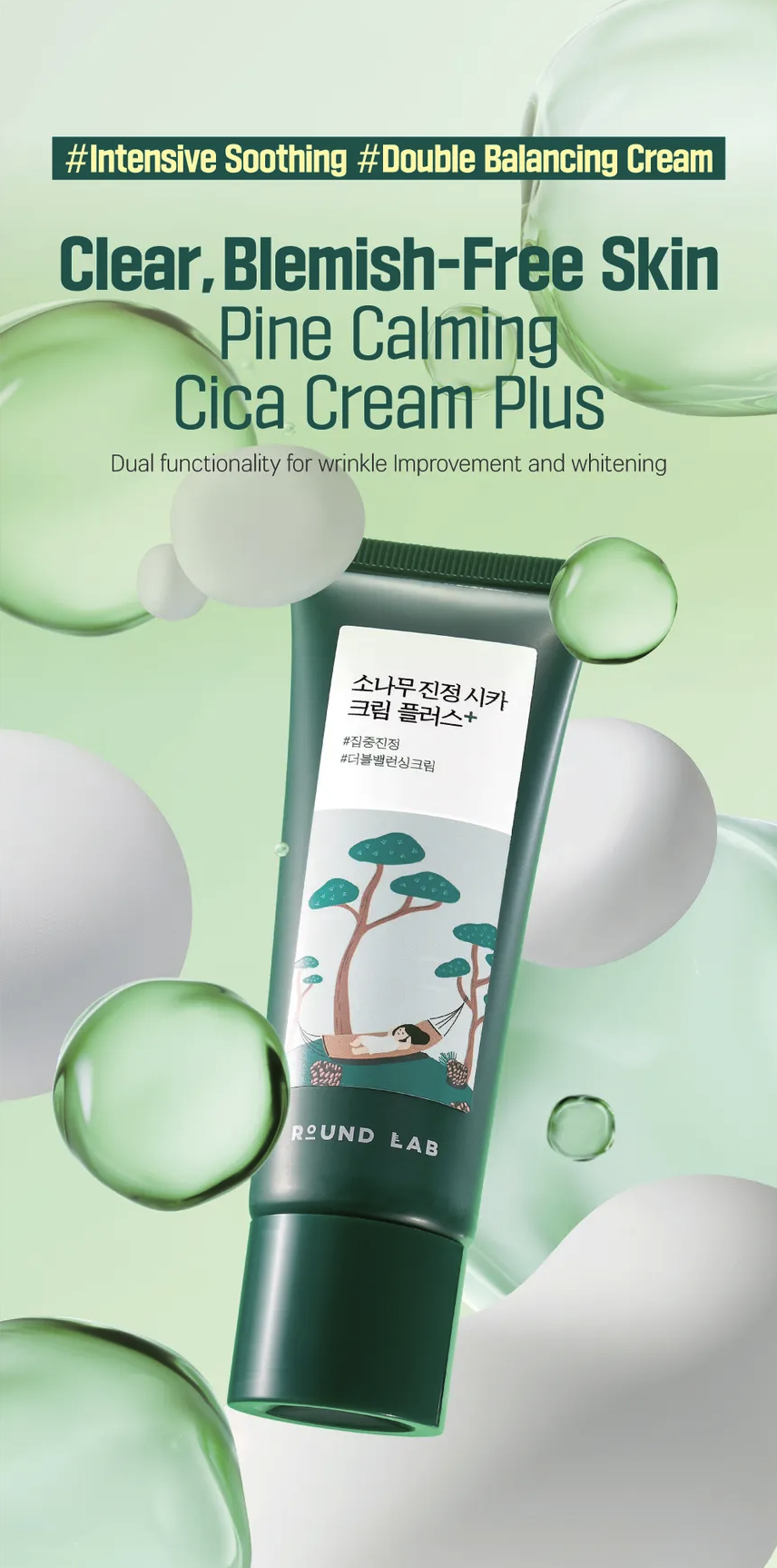 A soothing cream formulated with pine leaf extract and cica complexes to calm redness, hydrate, and support sensitive skin.